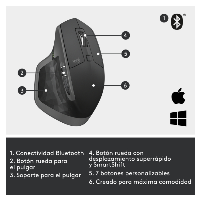 Para sacar el máximo provecho del Logitech MX 910-007224, como usar Logitech Flow y funciones avanzadas, se recomienda instalar el software Logitech Options disponible en la página oficial de Logitech.