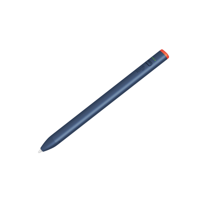 Lápiz digital Logitech azul, modelo 914-000080, ideal para oficina y papelería, con un peso de 20 gramos.