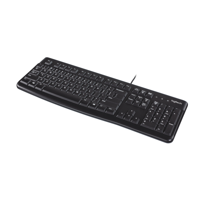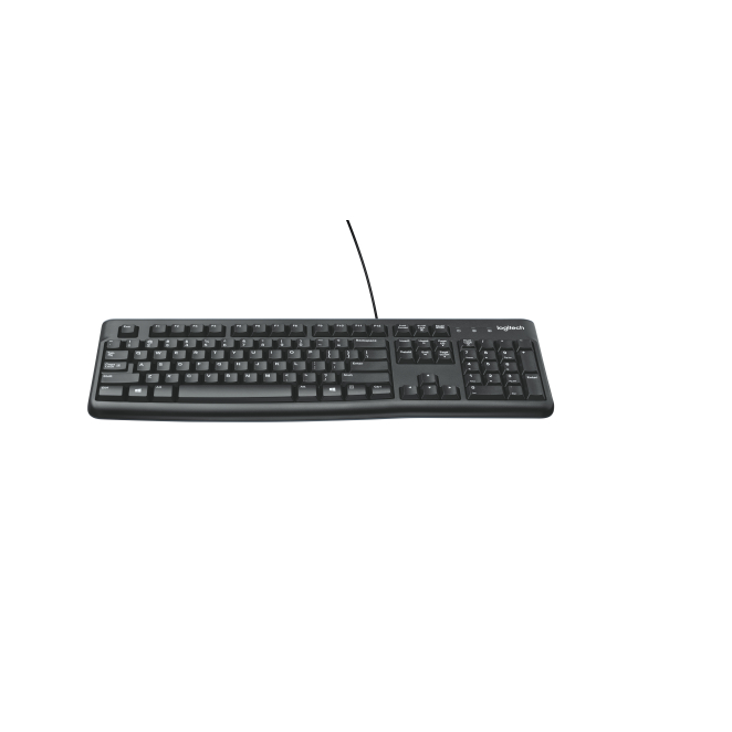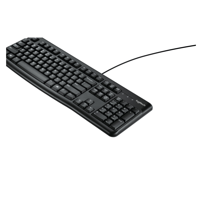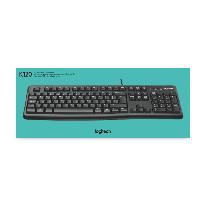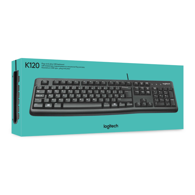 Teclado Logitech K120 para Oficina, conexión USB, distribución QWERTY Internacional de EE.UU., color Negro, SKU 920-002479