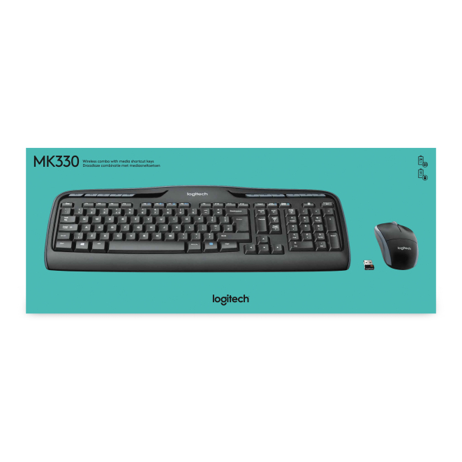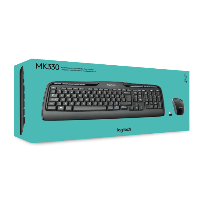 Aquí tienes algunas de las preguntas más comunes sobre el Logitech Wireless Combo MK330. Sí, el Logitech Wireless Combo MK330 es compatible con los sistemas operativos Windows, Mac OS, Chrome OS y Linux. No, el ratón incluido en el Logitech Wireless Combo MK330 dispone de tres botones: izquierda, derecha y rueda de desplazamiento. Sí, cuatro de las teclas F del Logitech Wireless Combo MK330 son reprogramables para adaptarse a tus necesidades. El Logitech Wireless Combo MK330 ofrece un alcance inalámbrico de hasta 10 metros. Sí, el teclado del Logitech Wireless Combo MK330 es resistente a derrames y salpicaduras hasta 60 ml. Uso recomendado Oficina Tecnología de conectividad Inalámbrico Interfaz del dispositivo USB Diseño de teclado QWERTY Idioma del teclado Internacional de EE.UU. Dispositivo apuntador No Formato del teclado Completo (100%) Teclado numérico Sí Concentrador USB No Utilizar con PC/servidor Lector de huella digital No Frecuencia de banda 2.4 GHz Resistencia a derrames y salpicaduras de hasta 60 ml Interruptor de encendido/apagado integrado Sí Retroiluminación No Estilo de teclado Derecho Descansa muñecas No Color del producto Negro Funciones de protección Resistente a derrames Alcance inalámbrico 10 m Alimentación Batería Teclado tipo de batería AAA Número de pilas (teclado) 2 Tecnología de batería Alcalino Vida de batería en servicio 24 mes(es) Tipo de batería AAA Numero de baterías soportadas 3 Ratón incluido Sí Tecnología de detección de movimientos Óptico Cantidad de botones 3 Rueda de desplazamiento Sí Tipo de desplazamiento Rueda Ratón tipo de batería AA Rueda de desplazamiento Sí Sistema operativo Windows soportado Windows 10, Windows 11 Otros sistemas operativos soportados ChromeOS Dimensiones de teclado (Ancho x Profundidad x Altura) 446,3 x 20,5 x 183 mm Peso del teclado 570 g Dimensiones del ratón (Ancho x Profundidad x Altura) 60 x 39 x 99 mm Peso del ratón 75.2 g Ancho del paquete 187 mm Profundidad del paquete 460 mm Altura del paquete 62 mm Peso del paquete 980 g Interfaz de receptor inalámbrico USB tipo A Interfaz de receptor inalámbrico USB tipo A Tipo de receptor Unifying receiver Dimensiones de receptor (Ancho x Profundidad x Altura) 14,4 x 6,6 x 18,7 mm Peso del receptor 2 g Código de Sistema de Armomización (SA) 84716060 Ancho de la caja principal 273 mm Longitud de la caja 475 mm Alto de la caja principal 202 mm Peso del envase completo 4520 g