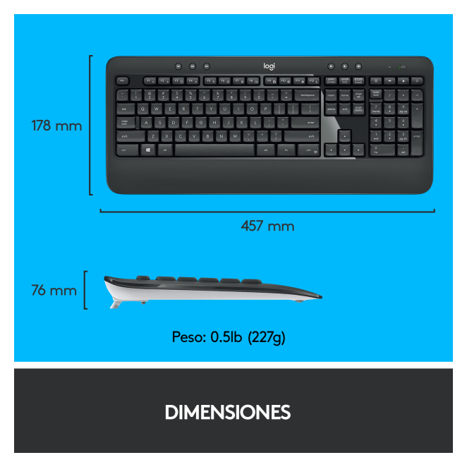 Teclado Logitech con ratón incluido, conexión RF inalámbrica, disposición QWERTY en español, en colores negro y blanco. SKU 920-008680 Este producto se puede comprar bajo demanda. Financiado desde: 3,62 € /mes Solicita información en caso de necesitar envío urgente. Métodos de pago: Logitech 920-008680 teclado Ratón incluido Universal RF inalámbrico QWERTY Español Negro, Blanco Descubre el combo elegante y funcional: el Logitech 920-008680 teclado y ratón incluido. Ideal para todo tipo de usuarios, ya sean profesionales o entusiastas, este conjunto inalámbrico universal destaca por su diseño ergonómico y elegante en color negro y blanco. Con el tipo de teclado QWERTY en español y tecnología de conectividad RF inalámbrica, disfrutarás de una experiencia sin cables y sin interrupciones. Además, este producto cuenta con un ratón óptico incluido, perfecto para complementar tu espacio de trabajo o entretenimiento. El Logitech 920-008680 teclado y ratón incluido ofrece múltiples ventajas. Primero, su diseño universal QWERTY en español se adapta a cualquier usuario. Segundo, la conectividad inalámbrica RF proporciona una experiencia sin cables con un rango de hasta 10 metros. Tercero, el ratón óptico incluido es preciso y ergonómico, ideal para largas sesiones de uso. Cuarto, las teclas de acceso directo y las teclas silenciosas mejoran tu productividad. Además, la tecnología Plug and Play garantiza una instalación fácil y rápida. Finalmente, este combo es resistente a derrames y salpicaduras, aumentando su durabilidad. El Logitech 920-008680 teclado y ratón incluido es perfecto para una variedad de usuarios. Desde profesionales que necesitan un equipo confiable para trabajar en la oficina o en casa, hasta estudiantes que requieren una mayor comodidad y funcionalidad para sus tareas diarias. También es ideal para gamers casuales que buscan un combo versátil sin complicaciones. Este teclado y ratón combo se adapta a cualquier entorno, desde escritorios minimalistas hasta estaciones de trabajo más complejas, gracias a su diseño elegante y su conectividad universal. Usar el Logitech 920-008680 teclado y ratón incluido es sinónimo de comodidad y productividad. Las teclas de membrana ofrecen una escritura suave y silenciosa, ideal para ambientes compartidos. El diseño del ratón es ambidiestro, perfecto para usuarios diestros y zurdos. Además, el descanso para muñecas del teclado reduce la fatiga durante largas sesiones de trabajo. La configuración Plug and Play facilita su uso inmediato sin necesidad de software adicional. Sus teclas programables y funciones específicas aumentan la eficiencia en tus tareas diarias. Este combo de teclado y ratón de Logitech es una inversión inteligente por múltiples razones: A continuación, te presentamos algunas de las preguntas más frecuentes sobre el Logitech 920-008680 teclado y ratón incluido: Sí, el Logitech 920-008680 es compatible con macOS, así como con Windows y otros sistemas operativos universales. No, el Logitech 920-008680 no cuenta con retroiluminación en las teclas. No, el Logitech 920-008680 es Plug and Play, lo que significa que no necesitas software específico para su funcionamiento. El teclado del Logitech 920-008680 utiliza dos pilas AA, mientras que el ratón utiliza una pila AA, todas alcalinas. Sí, el ratón del Logitech 920-008680 es ambidiestro, adecuado tanto para usuarios diestros como zurdos. Uso recomendado Universal Tecnología de conectividad Inalámbrico Interfaz del dispositivo RF inalámbrico Interruptor del teclado Interruptor de membrana Diseño de teclado QWERTY Idioma del teclado Español Dispositivo apuntador No Formato del teclado Completo (100%) Teclado numérico Sí Teclas de Windows Sí Teclas multimedia Sí Teclas de acceso directo Sí Concentrador USB No Utilizar con Universal Lector de huella digital No Frecuencia de banda 2.4 GHz Resistencia a derrames y salpicaduras de hasta 60 ml Ajuste del ángulo (mín.) 4 ° Interruptor de encendido/apagado integrado Sí Retroiluminación No Estilo de teclado Derecho Teclado de tamaño completo Sí Descansa muñecas Sí Altura de teclado ajustable Sí Color del producto Negro, Blanco Coloración de superficie Monocromo Indicadores LED Batería Funciones de protección Resistente a derrames, Resistente a la abrasión Alcance inalámbrico 10 m Conectar y usar (Plug and Play) Sí Alimentación Batería Teclado tipo de batería AA Número de pilas (teclado) 2 Tecnología de batería Alcalino Vida de batería en servicio 36 mes(es) Tipo de batería AA Numero de baterías soportadas 9 Ratón incluido Sí Factor de forma Ambidextro Tecnología de detección de movimientos Óptico Cantidad de botones 3 Rueda de desplazamiento Sí Tipo de desplazamiento Rueda Direcciones de desplazamiento Vertical Ratón tipo de batería AA Número de pilas (ratón) 1 Número de ruedas de desplazamiento 1 Rueda de desplazamiento Sí Sistema operativo Windows soportado Si Otros sistemas operativos soportados ChromeOS Dimensiones de teclado (Ancho x Profundidad x Altura) 457,3 x 24 x 193,5 mm Peso del teclado 805 g Dimensiones del ratón (Ancho x Profundidad x Altura) 39,2 x 111,5 x 61,8 mm Peso del ratón 73.5 g Ancho del paquete 48 mm Profundidad del paquete 530 mm Altura del paquete 200 mm Peso del paquete 1199 g Tipo de embalaje Caja Interfaz de receptor inalámbrico USB tipo A Receptor incluido Sí Interfaz de receptor inalámbrico USB tipo A Tipo de receptor Unifying receiver Pilas incluidas Sí Receptor unificador Sí Código de Sistema de Armomización (SA) 84716060 Caja GTIN (EAN/UPC) 50992060774210 Ancho de la caja principal 202 mm Longitud de la caja 539 mm Alto de la caja principal 218 mm Peso del envase completo 5364 g Cantidad por palé 140 pieza(s)
