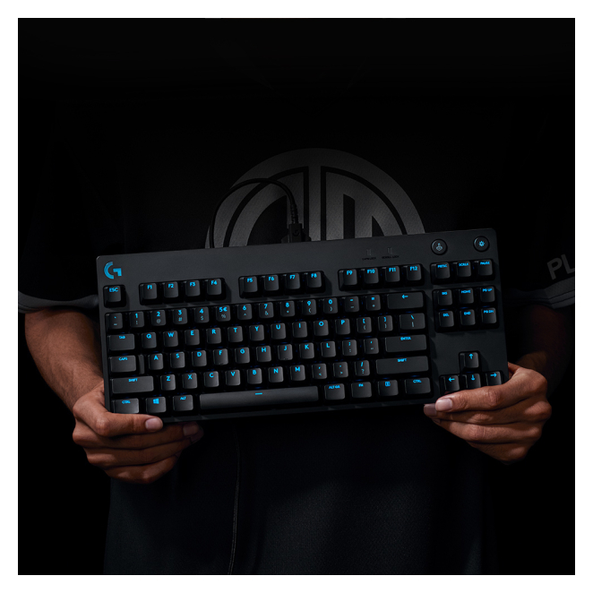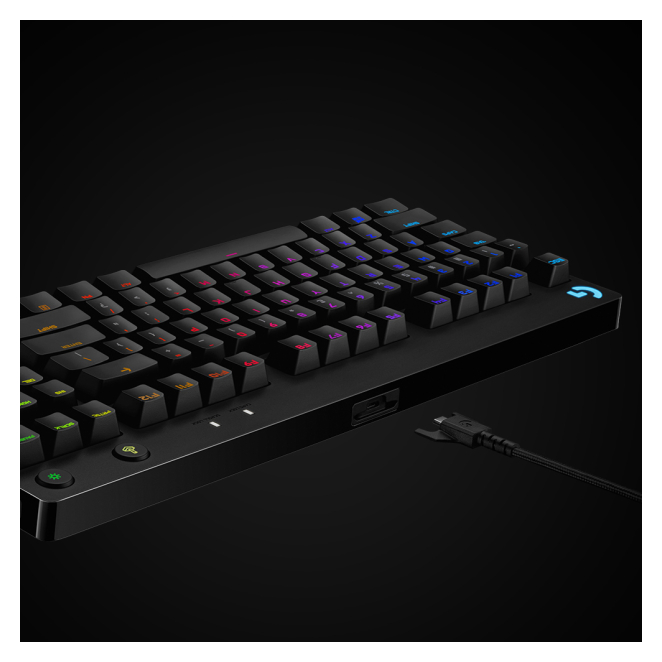 Teclado para juegos Logitech G PRO con conexión USB, diseño QWERTY internacional de EE.UU. en color negro. SKU 920-009392
