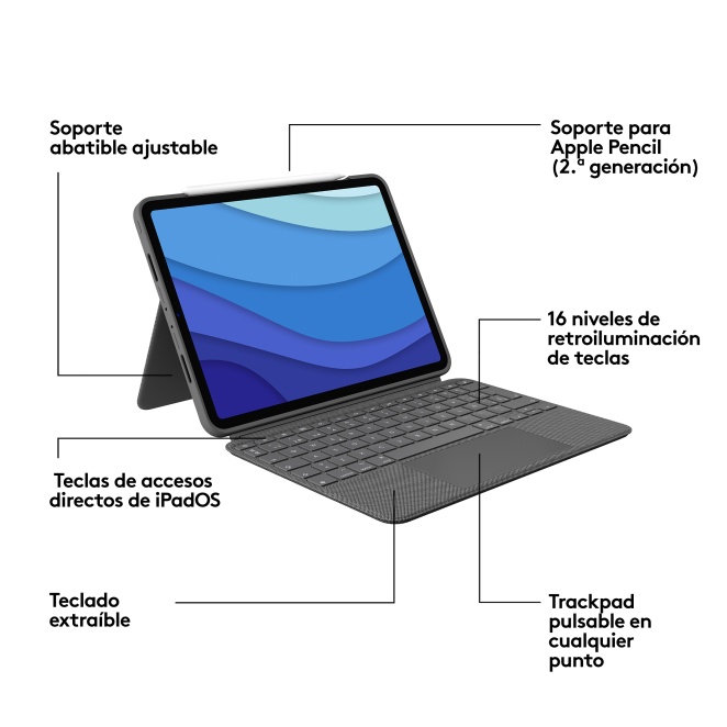 El Logitech 920-010145 teclado para móvil QWERTY Español Smart Connector Gris ofrece múltiples beneficios para sus usuarios. Primero, su configuración QWERTY en español asegura una experiencia de escritura fluida y natural. La conectividad mediante Smart Connector elimina la preocupación por la carga de baterías, ya que se alimenta directamente desde el dispositivo al que está acoplado. Su retroiluminación ajustable es perfecta para trabajar en condiciones de poca luz. Además, su diseño compacto y ligero lo hace ideal para llevarlo a cualquier lugar sin mayor esfuerzo. Este teclado es compatible con una amplia gama de dispositivos Apple, asegurando así su versatilidad y adaptabilidad.