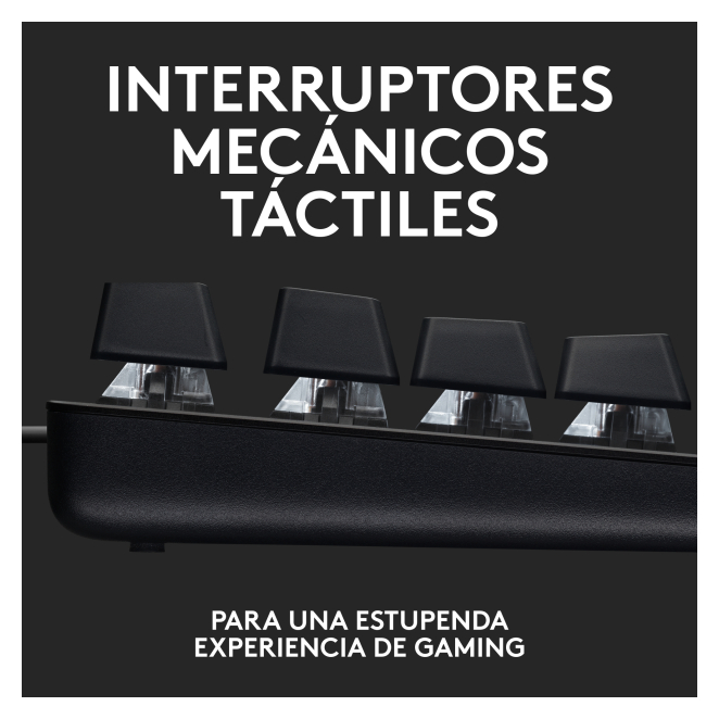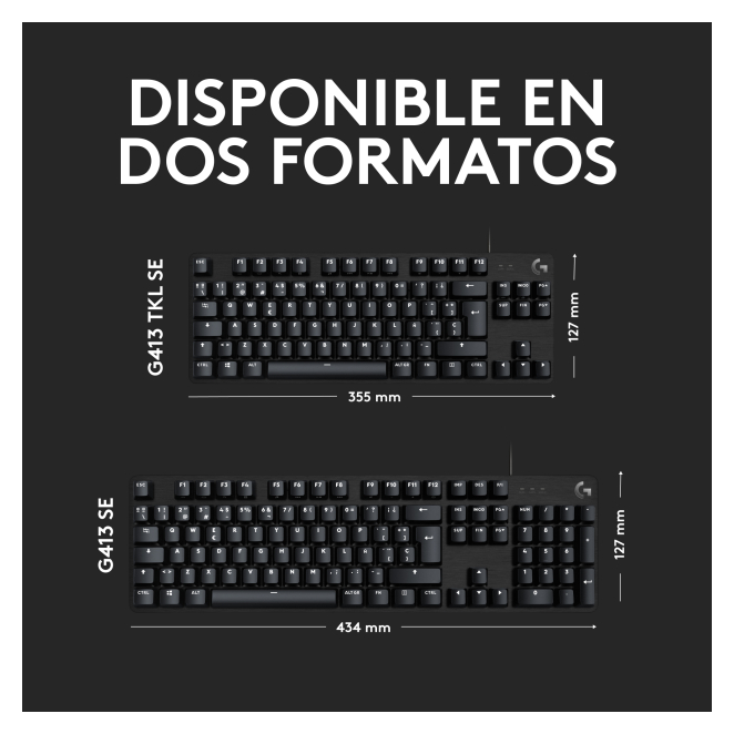 A continuación, encontrarás respuestas a algunas de las preguntas más comunes sobre el Logitech G G413 SE: Sí, el Logitech G G413 SE es compatible con la mayoría de las plataformas de gaming que aceptan teclados USB, incluyendo PC, Mac y algunas consolas. Sí, el Logitech G G413 SE permite ajustar la intensidad de su retroiluminación LED para adaptarse a diferentes condiciones de iluminación y preferencias de usuario. El Logitech G G413 SE utiliza interruptores mecánicos táctiles desarrollados por Logitech, diseñados para proporcionar una sensación precisa y una respuesta rápida. El Logitech G G413 SE no tiene teclas multimedia dedicadas, pero incluye 12 controles multimedia a través de las teclas de función para mayor funcionalidad. Sí, el Logitech G G413 SE es ideal tanto para gamers profesionales como para aficionados, gracias a su durabilidad, precisión y características avanzadas. Uso recomendado Juego Tecnología de conectividad Alámbrico Interfaz del dispositivo USB Interruptor del teclado Interruptor mecánico Diseño de teclado QWERTY Idioma del teclado Español Dispositivo apuntador No Formato del teclado Completo (100%) Teclado numérico Sí Teclado, cantidad de teclas 104 Distancia de viaje de las teclas 4 mm Retroiluminación Sí Estilo de teclado Derecho Color del producto Negro Coloración de superficie Monocromo Longitud de cable 1.8 m Alimentación USB Ratón incluido No Sistema operativo Windows soportado Windows 10, Windows 11 Dimensiones de teclado (Ancho x Profundidad x Altura) 127 x 435 x 36,3 mm Peso del teclado 780 g Ancho del paquete 45 mm Profundidad del paquete 455 mm Altura del paquete 173 mm Peso del paquete 1053 g Número de productos incluidos 1 pieza(s) Pilas incluidas No Ancho de la caja principal 200 mm Longitud de la caja 474 mm Alto de la caja principal 206 mm Peso del envase completo 4607 g
