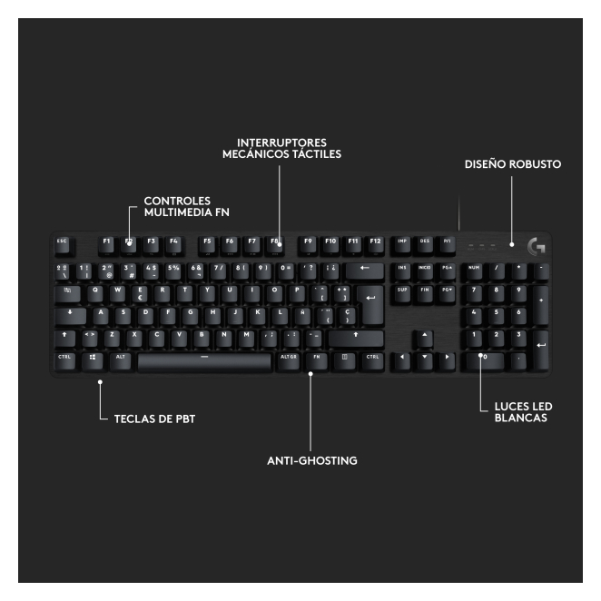 Aquí tienes algunas razones para elegir el Logitech G G413 SE para tu setup de gaming: El material de aluminio y PBT asegura una larga vida útil y resistencia al desgaste. Los interruptores mecánicos táctiles ofrecen una respuesta rápida y precisa. La iluminación blanca ajustable permite jugar en cualquier condición de luz. Las teclas multifunción y controles multimedia integrados proporcionan una mayor eficiencia.