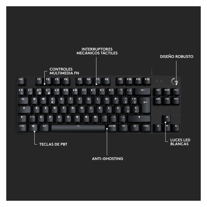 El Logitech G G413 TKL SE aporta múltiples beneficios para los gamers, destacando su rendimiento y durabilidad. Gracias a sus interruptores mecánicos táctiles, cada pulsación es precisa y rápida, lo que es crucial en juegos competitivos. Las teclas de PBT ofrecen una durabilidad excepcional, resistiendo el desgaste por uso prolongado. Además, su retroiluminación LED blanca no solo mejora la visibilidad en condiciones de poca luz, sino que también aporta un toque estético que complementa cualquier setup gaming. La tecnología de rollover de 6 teclas y la prevención de efecto fantasma aseguran que cada pulsación sea registrada correctamente, incluso en las situaciones de juego más intensas.