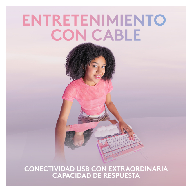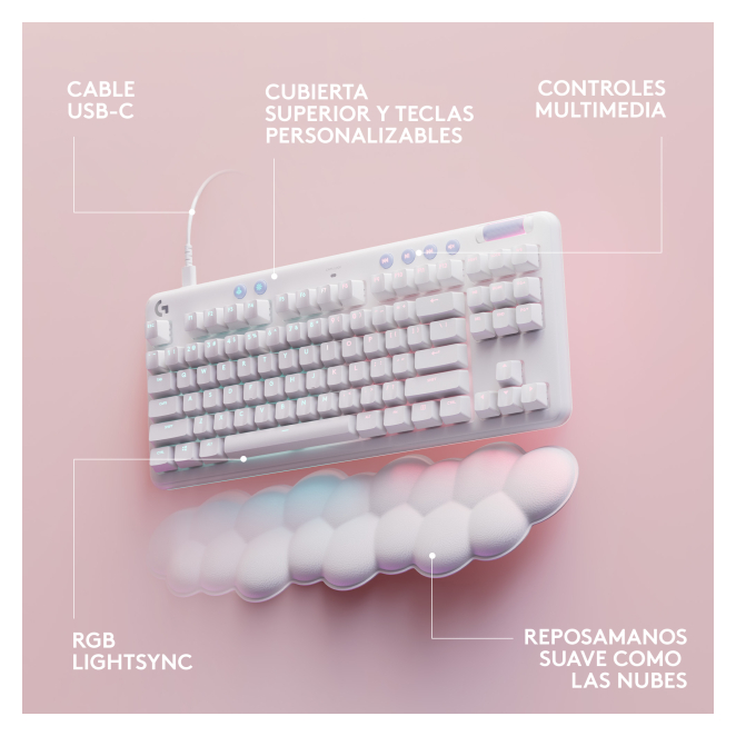 El Logitech G G713 proporciona una experiencia de usuario excepcional. Su conectividad alámbrica USB asegura una transmisión de datos sin retrasos, lo que se traduce en una experiencia de juego fluida. La inclusión de un descansa muñecas contribuye a la comodidad en sesiones prolongadas y la disposición tailess permite moverse con mayor libertad. Las teclas fabricadas en PBT garantizan una durabilidad superior y la retroiluminación RGB facilita jugar en entornos con poca luz.