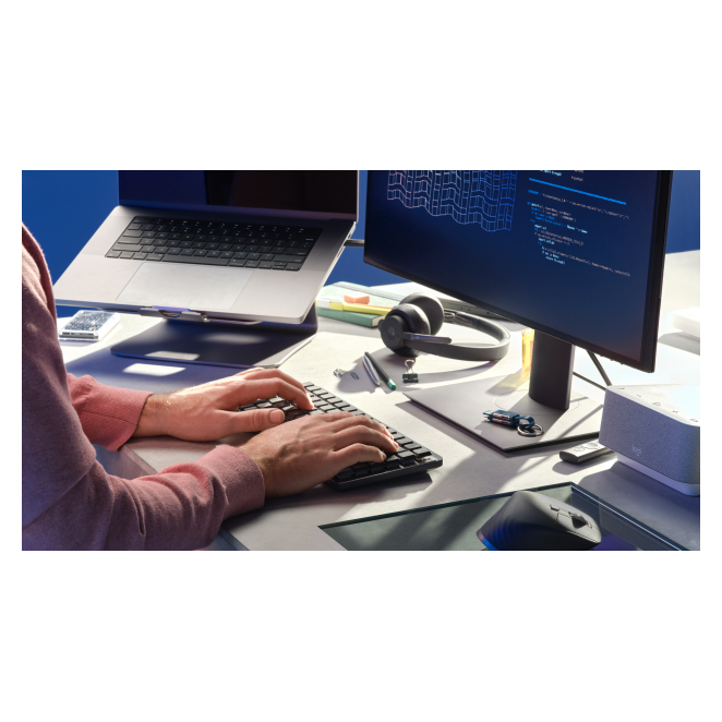El teclado Logitech 920-010782 ofrece múltiples ventajas para maximizar su productividad. Gracias a la integración de la tecnología RF Wireless y Bluetooth, puede conectarse fácilmente a diferentes dispositivos, lo que proporciona una gran versatilidad. Su diseño tenkeyless reduce la fatiga de las muñecas y permite una postura más ergonómica. Además, la retroiluminación LED ajustable facilita el trabajo en condiciones de poca luz. Este teclado inalámbrico Logitech cuenta también con una batería de larga duración de hasta 10 meses y es recargable vía USB Tipo C, lo que garantiza menos interrupciones y una experiencia de uso ininterrumpida.