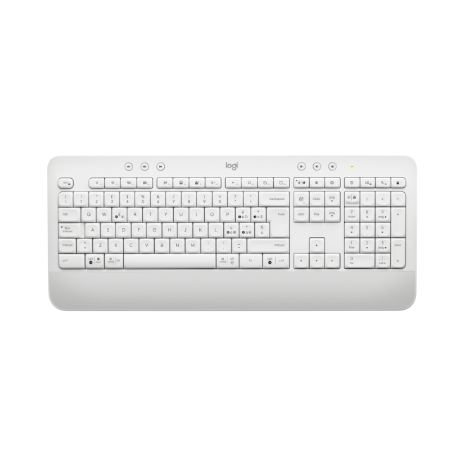 Imagen del Logitech Signature MK650, un teclado de oficina con ratón incluido, conexión Bluetooth, diseño QWERTY en italiano y color blanco, SKU 920-011024.