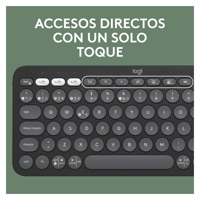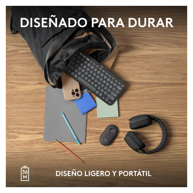 Aquí tienes algunas de las preguntas más frecuentes sobre el Logitech Pebble Keys 2 K380s para resolver cualquier duda que puedas tener: Sí, el Logitech Pebble Keys 2 K380s es compatible con dispositivos que utilizan iOS y Android, así como con Windows, macOS y Chrome OS. La batería del Logitech Pebble Keys 2 K380s puede durar hasta 36 meses, dependiendo del uso. No, el Logitech Pebble Keys 2 K380s no cuenta con retroiluminación en sus teclas. Sí, puedes alternar entre tres dispositivos diferentes utilizando los botones Easy-Switch. No, el Logitech Pebble Keys 2 K380s no incluye ratón. Uso recomendado Universal Tecnología de conectividad Inalámbrico Interfaz del dispositivo Bluetooth Interruptor del teclado Switch de tecla de tijera Diseño de teclado QWERTY Idioma del teclado Español Dispositivo apuntador No Formato del teclado Mini Teclado numérico No Teclas de acceso directo Sí Interruptor de encendido/apagado integrado Sí Retroiluminación No Estilo de teclado Derecho Color del producto Grafito Coloración de superficie Monocromo Indicadores LED Si Alcance inalámbrico 10 m Alimentación Batería Teclado tipo de batería AAA Número de pilas (teclado) 2 Tecnología de batería Alcalino Vida de batería en servicio 36 mes(es) Ratón incluido No Sistema operativo Windows soportado Windows 10, Windows 11 Sistema operativo Linux soportado Si Otros sistemas operativos soportados ChromeOS Sistemas operativos móviles soportados Android 10.0, Android 11.0, Android 12.0, Android 13.0, Android 8.0, iOS 14, iOS 14.5, iOS 15, iOS 16, iPadOS Dimensiones de teclado (Ancho x Profundidad x Altura) 279 x 16 x 124 mm Peso del teclado 415 g Número de productos incluidos 1 pieza(s) Receptor incluido No Pilas incluidas Sí