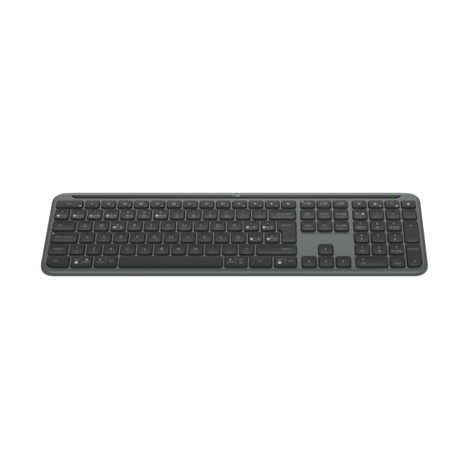 Integración y diseño: El Logitech Signature Slim K950 presenta un diseño delgado y monocromo en grafito, complementando cualquier entorno de trabajo.