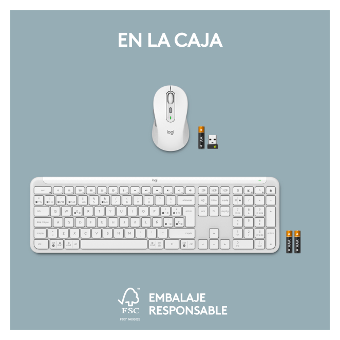 - Bajo Consumo: La vida de la batería del teclado es de hasta 36 meses y 24 meses para el ratón, con tecnología de batería alcalina.