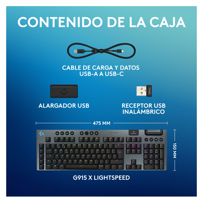 Logitech G teclado para gaming inalámbrico de perfil bajo G915 X LIGHTSPEED