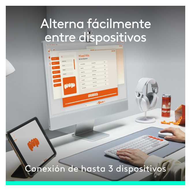 El Logitech POP ICON COMBO puede conectarse a hasta tres dispositivos simultáneamente gracias a la tecnología Easy-Switch Logitech.