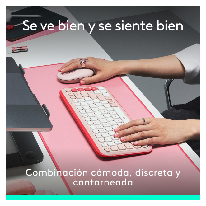 Añade un toque extra de estilo y funcionalidad a tu escritorio con la combinación de teclado y ratón Bluetooth Logitech POP ICON COMBO. Este kit, con un diseño contorneado y un alegre color rosado, ofrece una experiencia de uso cómoda y eficiente. Con teclas de perfil bajo, teclas y botones de acción personalizables, y una conectividad inalámbrica fiable, el Logitech POP ICON COMBO facilita el trabajo diario y aumenta la productividad significativamente. Ideal para cualquier entorno, el combo ofrece escritura cómoda y clics discretos, y se puede conectar hasta con tres dispositivos a través de la tecnología Easy-Switch Logitech.