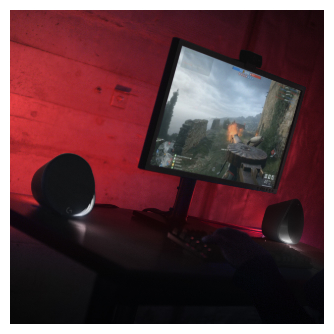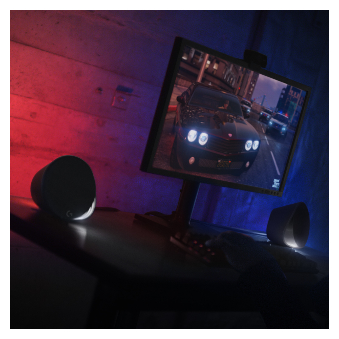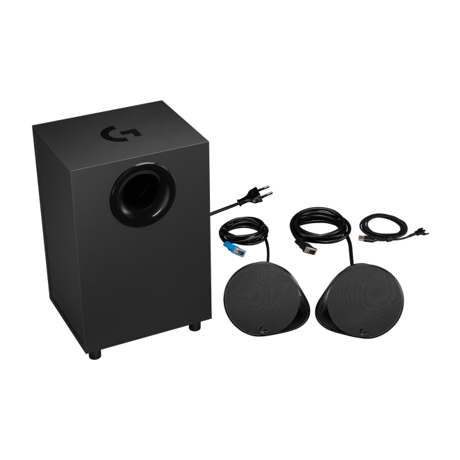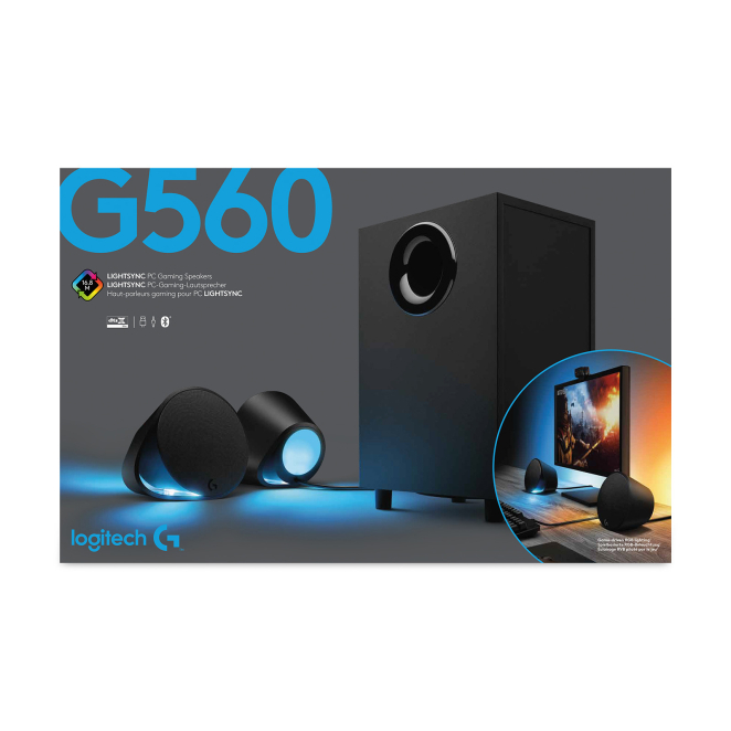 Logitech G, conjunto de altavoces negros de 120W con Bluetooth, ideal para PC y portátiles. SKU: 980-001301