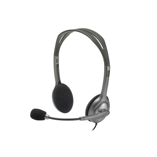Auriculares Logitech LGT-H110 con micrófono, cable y auriculares acolchados, SKU 981-000271