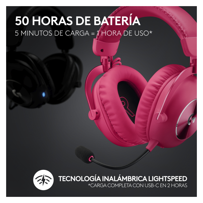Échale un vistazo a las razones más convincentes para elegir el Logitech G PRO X 2 LIGHTSPEED Headset como tu compañero de gaming: Disfruta de una conexión rápida y sin interrupciones que es fundamental para el gaming competitivo. Sumérgete completamente en el juego con la tecnología DTS Headphone:X 2.0. El micrófono boom con cancelación de ruido permite una comunicación clara y precisa. Hasta 50 horas de batería te aseguran largas sesiones de juego sin interrupciones. Materiales premium y diseño ergonómico para sesiones de juego prolongadas. Aquí tienes respuestas a algunas de las preguntas más comunes sobre el Logitech G PRO X 2 LIGHTSPEED Headset. Sí, el Logitech G PRO X 2 LIGHTSPEED Headset es compatible con PlayStation 5, PlayStation 4 y Nintendo Switch. La batería dura hasta 50 horas con una sola carga, ideal para largas sesiones de juego. Sí, el micrófono boom es completamente desmontable para mayor comodidad. Ofrece sonido envolvente 7.1 con tecnología DTS Headphone:X 2.0, inmersivo y de alta calidad. Sí, incluye un receptor inalámbrico USB tipo A, funda protectora y una guía de configuración rápida. Tipo de producto Auriculares Estilo de uso Diadema Uso recomendado Juego Color del producto Rosa Longitud de cable 1.8 m Tecnología de conectividad Inalámbrico Alcance inalámbrico 30 m Bluetooth Sí Audifonos Circumaural Frecuencia de auricular 20-20000 Hz Obstrucción 38 Ω Sensibilidad de auricular 87.8 dB Tipo de imán Neodimio Tipo de micrófono Boom Frecuencia de micrófono 100-10000 Hz Cancelación de ruido del micrófono Sí Sensibilidad de micrófono -39 dB Tipo de dirección de micrófono Unidireccional/Cardioide Sistema operativo Windows soportado Si Ancho 176 mm Profundidad 95 mm Altura 189 mm Peso 345 g Ancho del paquete 91.5 mm Cantidad 1 Cables incluidos Audio (3ˌ5mm), USB tipo A a USB tipo C Almohadillas para oidos Sí Conector de 3,5 mm Sí