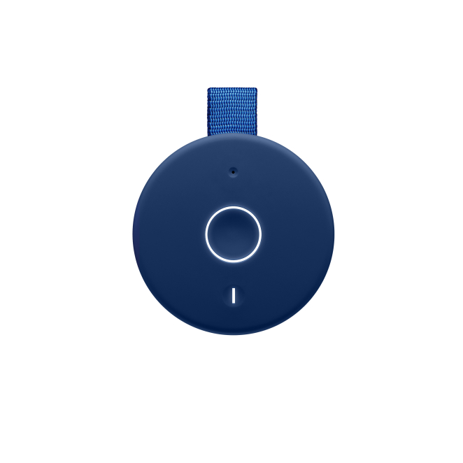 Imagen del altavoz portátil Ultimate Ears modelo 984-001362 en color azul, con sonido estéreo y resistencia al agua.