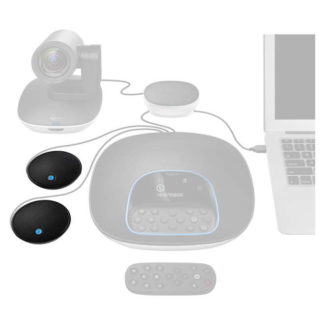 Micrófono de superficie Logitech modelo 989-000171, color negro, ideal para mesas, con alta calidad de sonido