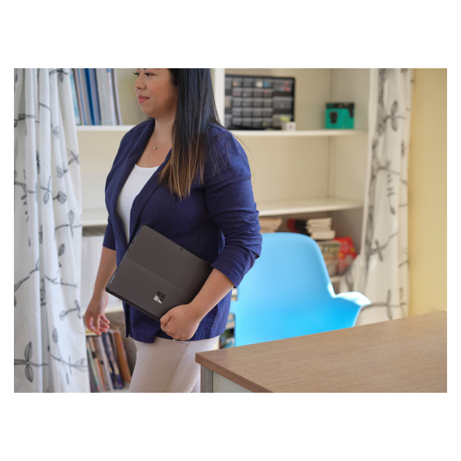 Movilidad: Su diseño ligero y delgado, sumado a la durabilidad de la batería de hasta 16 horas, permite llevarlo a cualquier lugar.