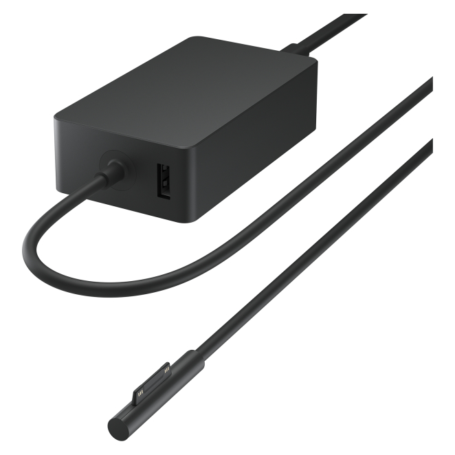 Cargador Microsoft Surface de 65W en color negro para portátiles y tabletas. SKU: W8Y-00006 Este producto está retirado de la venta por el fabricante y no se puede comprar. El precio del producto no está disponible. Solicita información en caso de necesitar envío urgente. Métodos de pago: Cargador Microsoft Surface 65W Power Supply, Tableta y Portátil, Negro El Cargador Microsoft Surface 65W Power Supply es una solución de energía eficiente diseñada para mantener tus dispositivos Microsoft siempre cargados y listos para usar. Compatible con una amplia gama de dispositivos Surface, este adaptador de corriente es imprescindible para aquellos usuarios que requieren fiabilidad y rendimiento en sus rutinas diarias. Con una potencia de 65W y un puerto USB adicional, puedes cargar tu portátil o tableta y un dispositivo adicional simultáneamente, todo con la seguridad y garantía de ser un producto original Microsoft. Este cargador también cuenta con un diseño compacto y liviano en color negro, lo que lo hace fácil de llevar y almacenar.