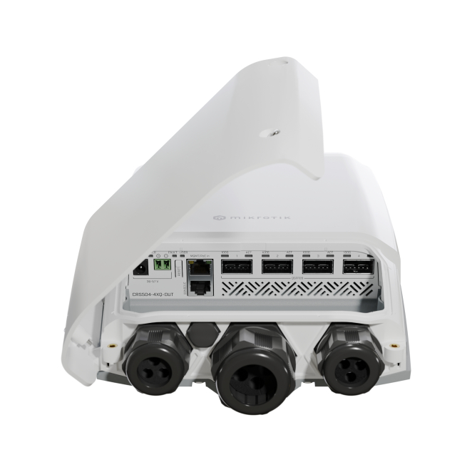 Switch Gestionado L3 Mikrotik CRS504-4XQ-OUT, Fast Ethernet 10/100, PoE, tamaño 1U de color blanco