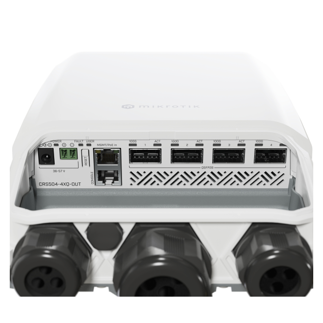 El Mikrotik CRS504-4XQ-OUT incluye 4 puertos QSFP28.
