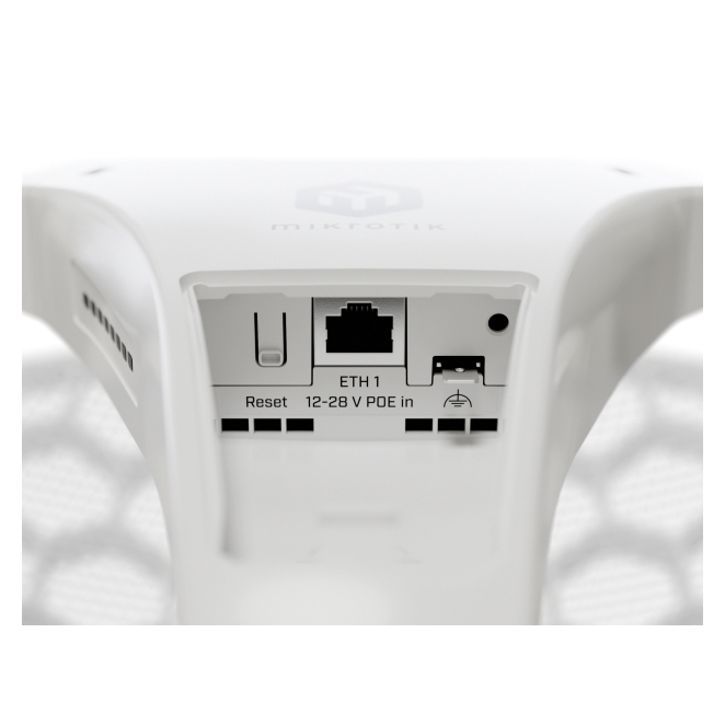 Router inalámbrico Mikrotik LHG XL 5 ax, velocidad de 1200 Mbit/s en color blanco con soporte para Energía sobre Ethernet, SKU: LHG-5axD-XL