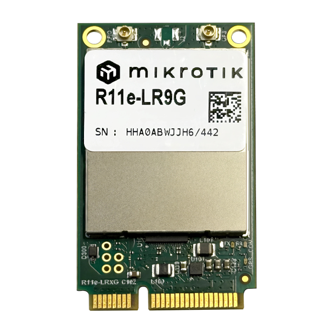 Imagen del módulo Mikrotik R11e-LR9G LoRaWAN interno con capacidades de largo alcance y SKU R11e-LR9G