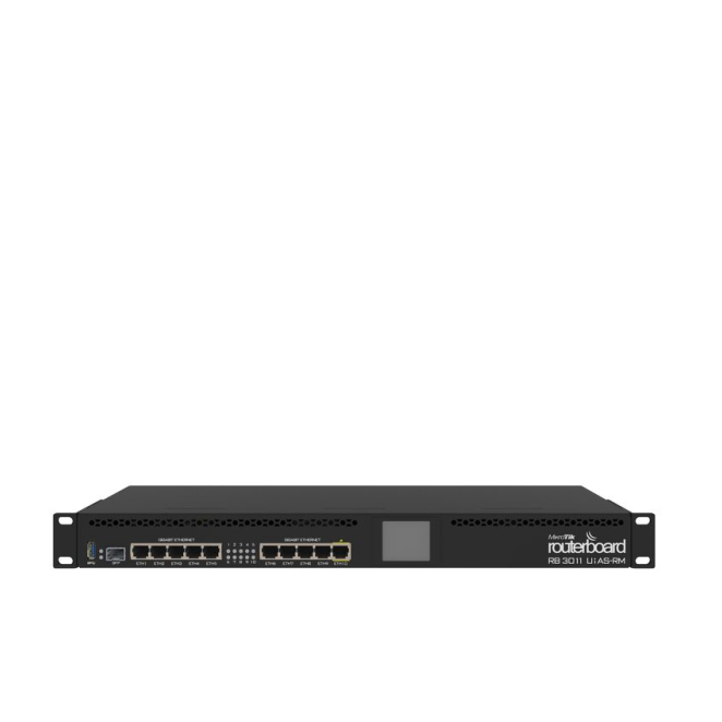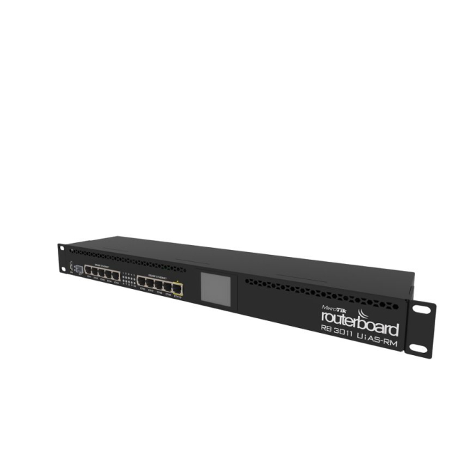 Mikrotik RB3011UIAS-RM router de alto rendimiento con puertos Gigabit Ethernet en color negro, SKU: RB3011UiAS-RM