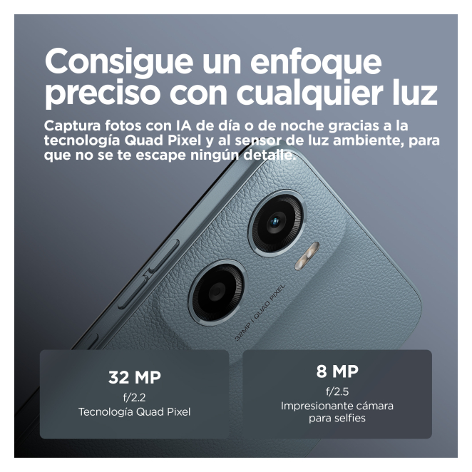 Fotografía avanzada: Captura cada momento con la cámara trasera de 32 MP con inteligencia artificial y tecnología Quad Pixel.
