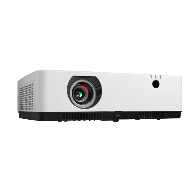 Proyector NEC ME383W en blanco con resolución WXGA (1280×800), 3800 lúmenes ANSI y tecnología 3LCD. SKU: 60005220
