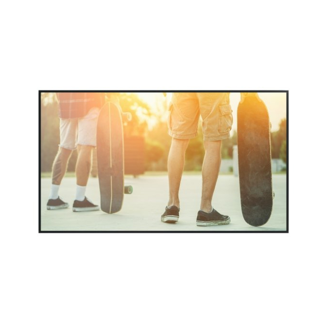 El diseño delgado y elegante de esta pantalla no solo mejora la estética de cualquier espacio, sino que también facilita su montaje en diversas orientaciones.