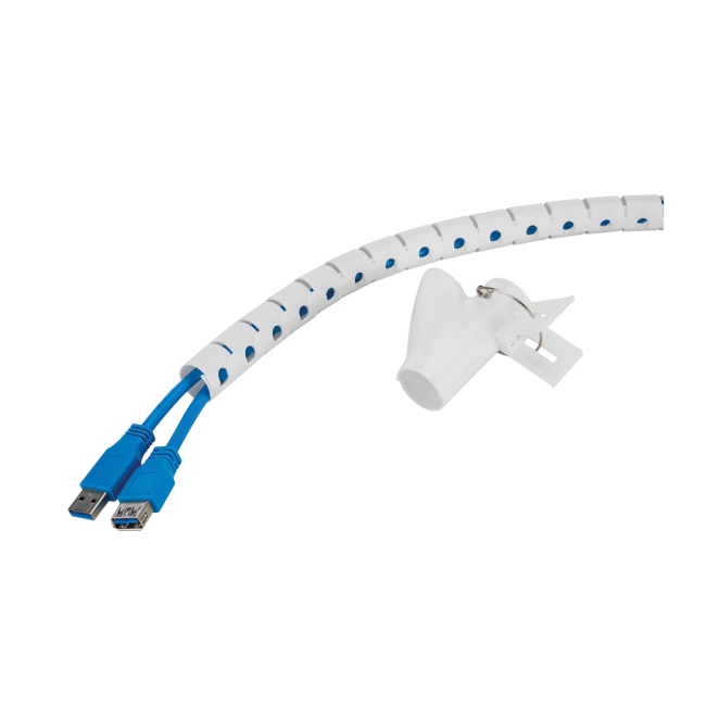 Sí, incluye un clip guía que facilita la inserción y organización rápida de los cables en el tubo espiral.