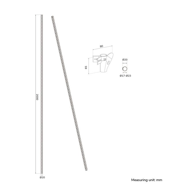 El tubo espiral tiene un diámetro de Ø20 mm y una longitud de 2000 mm.