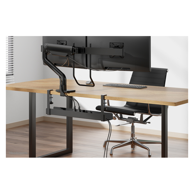 La Neomounts ADS07-121BL es compatible con la mayoría de los escritorios gracias a su sistema de montaje de abrazadera universal.