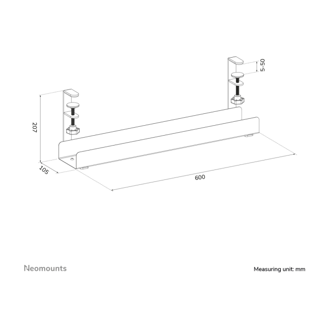 Imagen de la bandeja para cables Neomounts ADS07-121BL con montaje de abrazadera universal, SKU ADS07-121BL