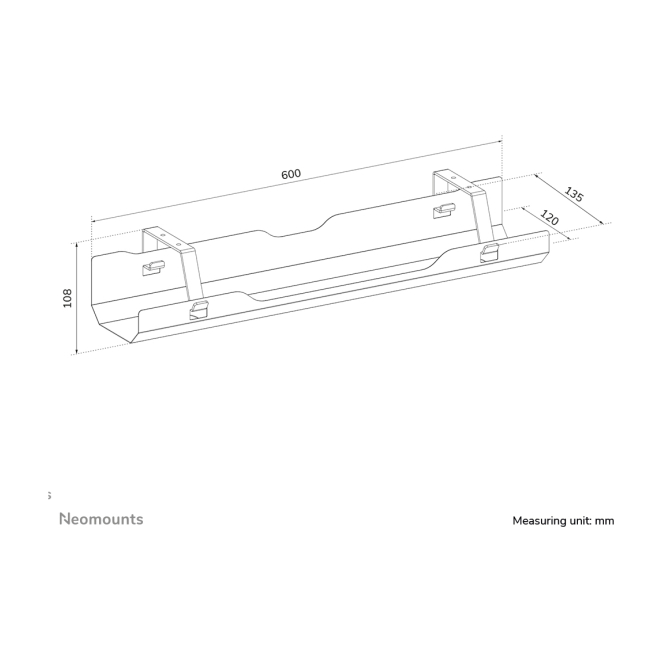 Bandeja para cables Neomounts con fijación por tornillos, universal, SKU ADS07-122BL, ideal para organizar cables y mejorar la gestión de cables.