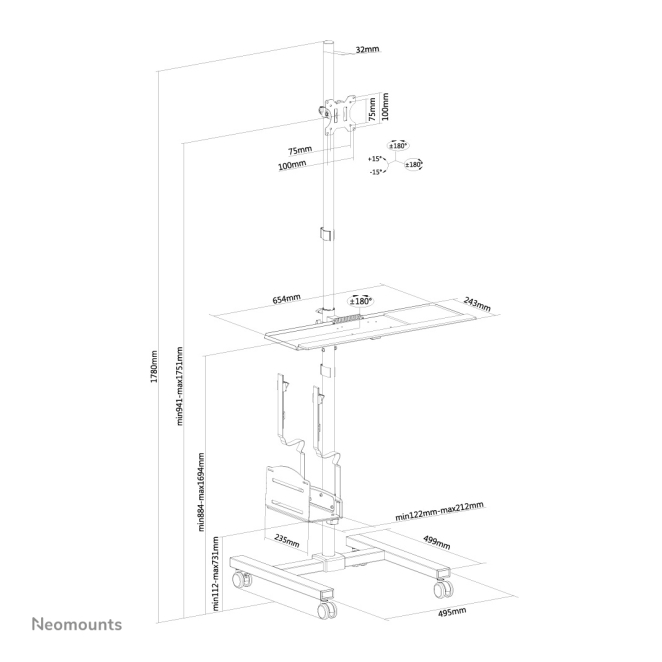 Neomounts FPMA-MOBILE1700 estación de trabajo móvil 10-32″
