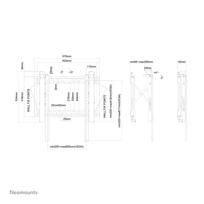 Neomounts soporte de pared ajustable para TV con inclinación modelo LED-VW2500BLACK1, negro