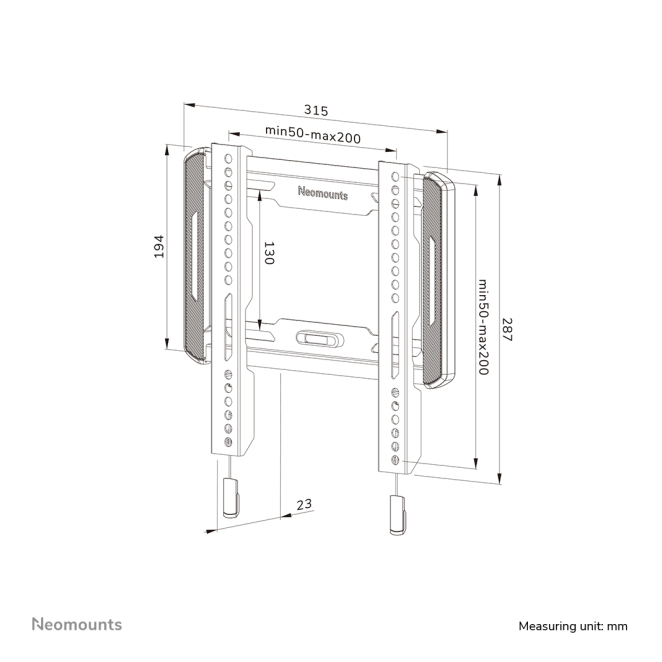 Soporte de pared Neomounts WL30-550BL12 para televisores de 24 a 65 pulgadas, diseño ultra plano y montaje fácil. SKU: WL30-550BL12 Stock disponible en nuestros almacenes Financiado desde: 1,27 € /mes Solicita información en caso de necesitar envío urgente. Métodos de pago: Soporte de pared Neomounts WL30-550BL12 para TV de 24-65 pulgadas – ultra plano y fácil montaje El soporte de pared Neomounts WL30-550BL12 es la solución perfecta para montar tu televisor de forma segura y elegante. Diseñado específicamente para pantallas planas de 24 a 65 pulgadas, este soporte es capaz de soportar un peso máximo de 40 kg, proporcionando una instalación robusta y estable. Su diseño ultra plano, con una profundidad de solo 2,3 cm, permite que tu televisor se integre de manera discreta en cualquier habitación, optimizando el espacio disponible. Además, es compatible con una amplia gama de interfaces de montaje VESA, desde 50×50 mm hasta 200×200 mm, lo que garantiza una gran variedad de opciones de instalación. El soporte de pared Neomounts WL30-550BL12 ofrece numerosos beneficios clave. Optimización de espacio gracias a su diseño ultra plano de solo 2,3 cm de profundidad. Compatibilidad versátil con pantallas de 24 a 65 pulgadas y patrones de montaje VESA de 50×50 a 200×200 mm. Instalación rápida y sencilla debido a su ingenioso sistema magnético de extracción y liberación, junto con el nivel de burbuja integrado. Seguridad mejorada gracias a las correas de tracción y liberación que se esconden detrás de la pantalla, evitando movimientos no deseados.
