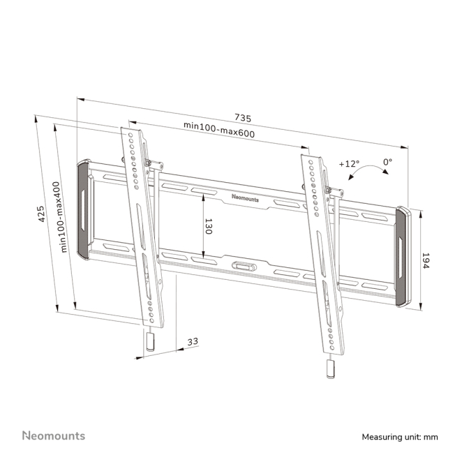 El Neomounts WL35-550BL16 permite una inclinación de 0 a 12 grados, lo que facilita ajustar el ángulo de visión.