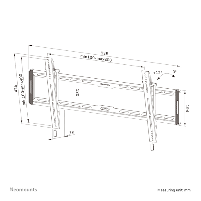 El Neomounts WL35-550BL18 es un soporte de pared inclinable diseñado específicamente para televisores con tamaños que van de 43 a 86 pulgadas. Ofrece una capacidad máxima de peso de hasta 60 kg, lo que lo hace perfecto para soportar pantallas grandes y pesadas. Con su tecnología de inclinación de 12 grados, este soporte permite ajustar la pantalla para obtener el ángulo de visión óptimo. Además, el Neomounts WL35-550BL18 facilita un montaje muy sencillo gracias a su sistema magnético de extracción y liberación, junto con un nivel de burbuja integrado para asegurar una instalación precisa. Este soporte es compatible con una amplia gama de patrones de agujeros VESA, desde 100×100 hasta 800×400 mm.