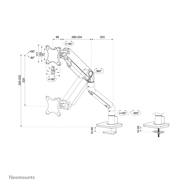 Neomounts DS70S-950WH1 Brazo de monitor 17-49″ – resorte de gas – Topfix – Tope-a-180°