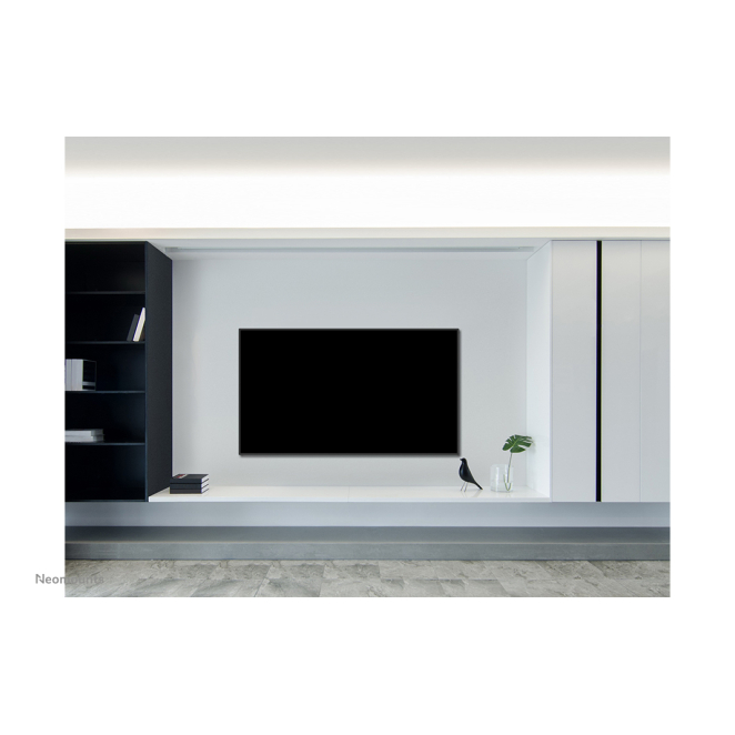 El Neomounts WL30-550BL18 deja una distancia de solo 23 mm entre la pared y el televisor, manteniendo un perfil ultra plano.