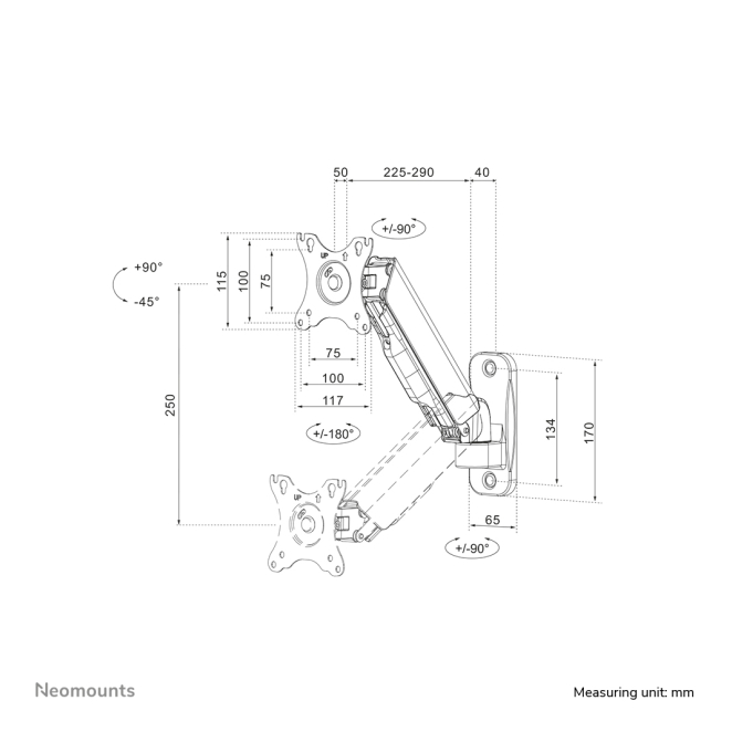 Soporte de pared para monitor/TV Neomounts WL70-440BL11 con resorte de gas y movimiento completo