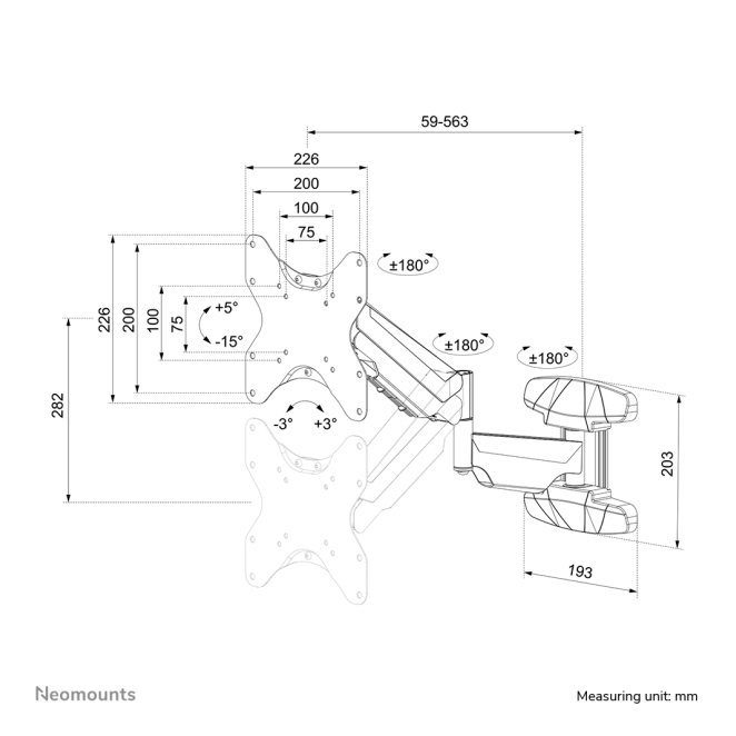 Neomounts WL70-550BL12 Soporte de pared para monitor/TV 23-42″ – resorte de gas – movimiento completo