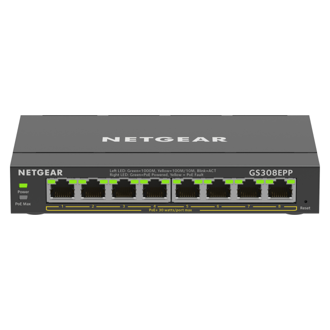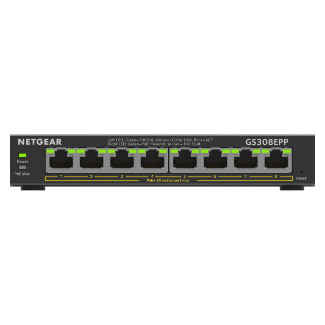 NETGEAR 8-Port Gigabit Ethernet High-Power PoE+ Plus Switch (GS308EPP)