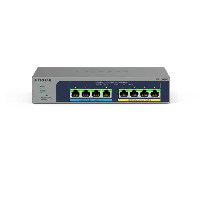 Switch gestionado NETGEAR Ultra60 PoE++ con 8 puertos, compatible con velocidades de 2.5G Ethernet, SKU MS108EUP-100EUS